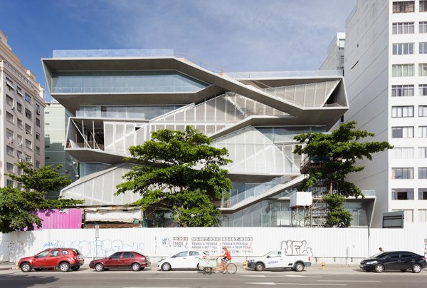 Es un edificio de siete plantas con un diseño externo bastante curioso en zig-zag y con interiores pensados como grandes espacios que alberguen galerías, auditorios, restaurantes e incluso un cine al aire libre en el tejado.