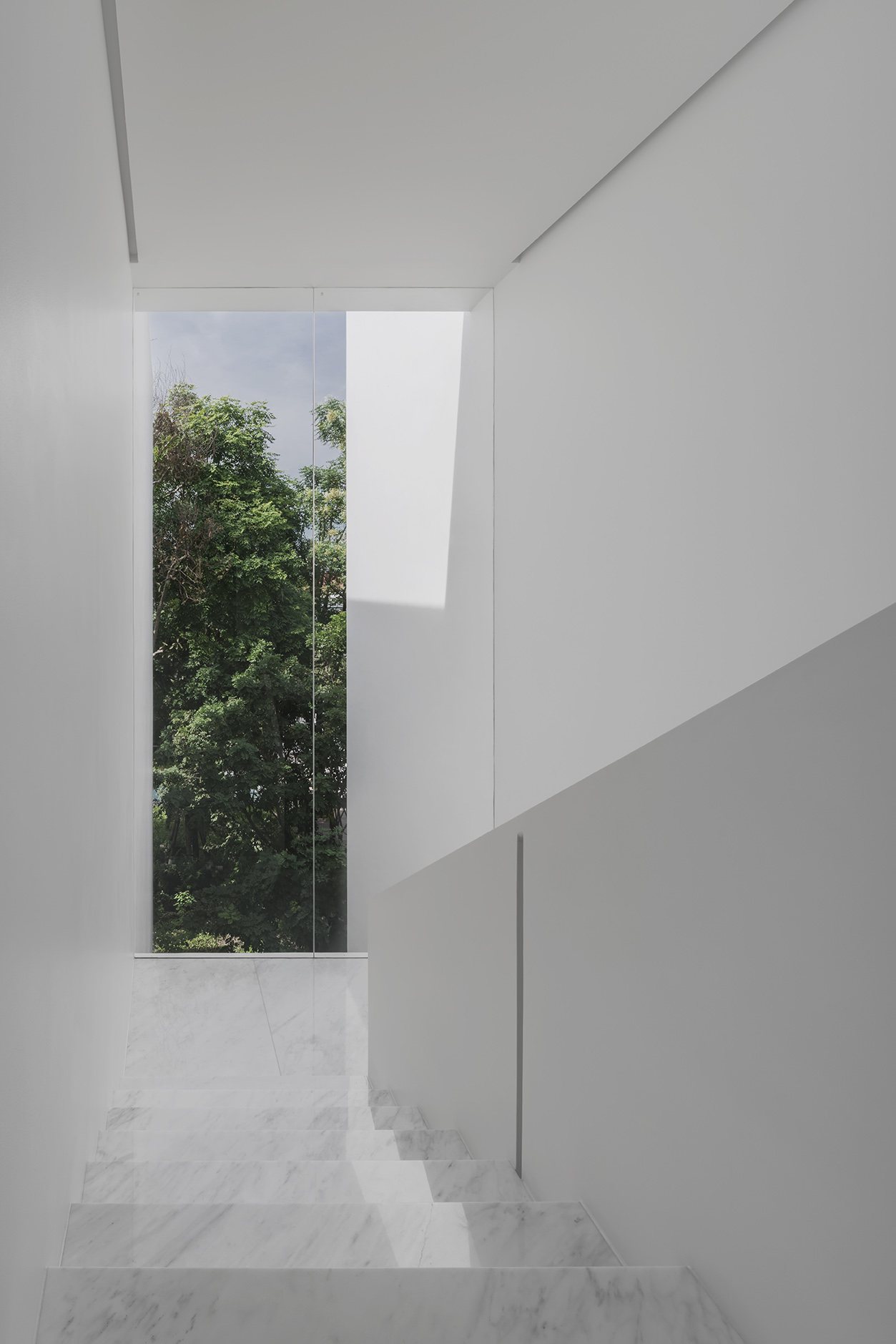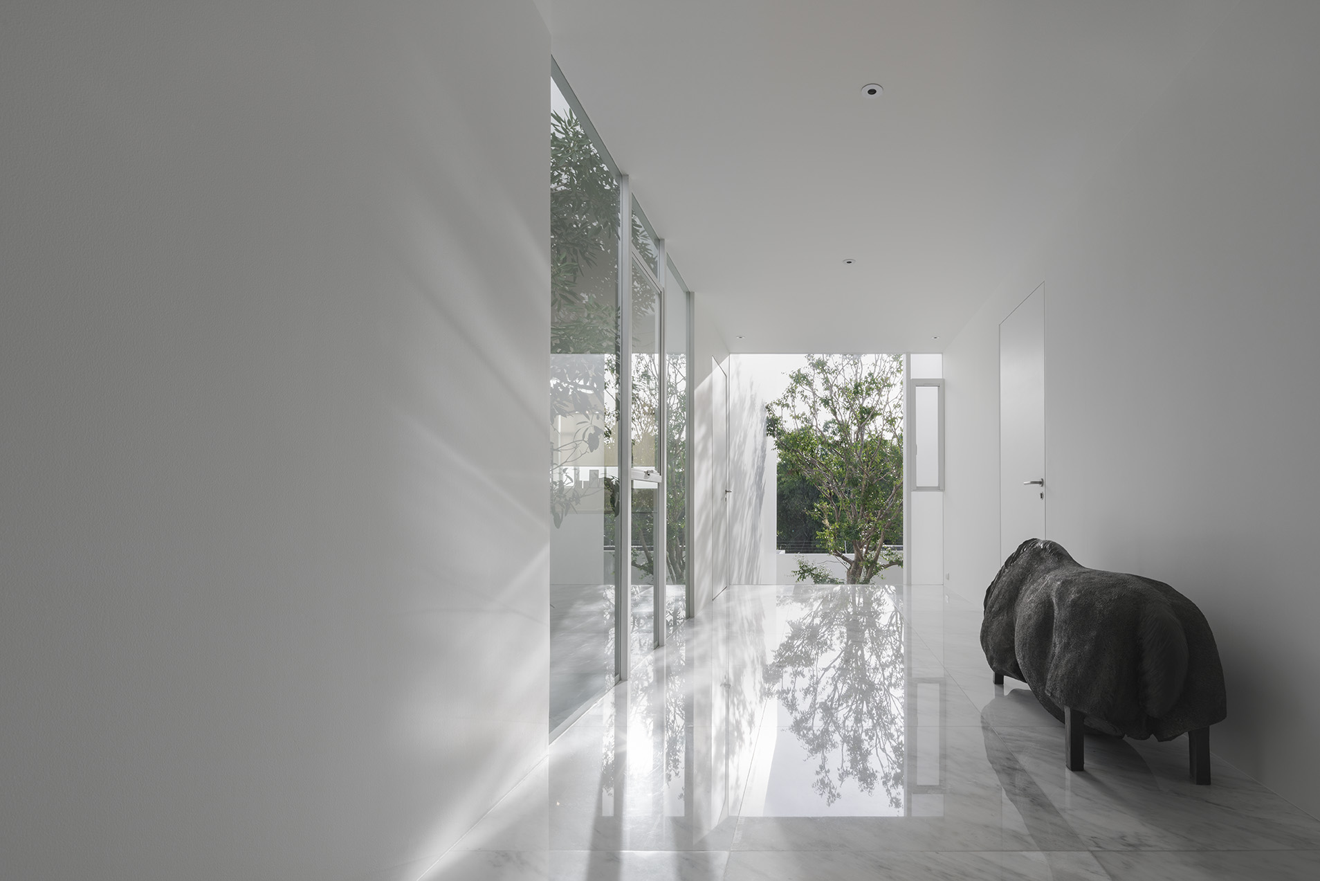 En general, esta vivienda posee patios que crean variedad de conexiones entre la casa y el jardín. Sus paredes blancas actúan como un gran lienzo en el que la luz solar y las ramas de los árboles dibujan patrones cambiantes a lo largo del día.